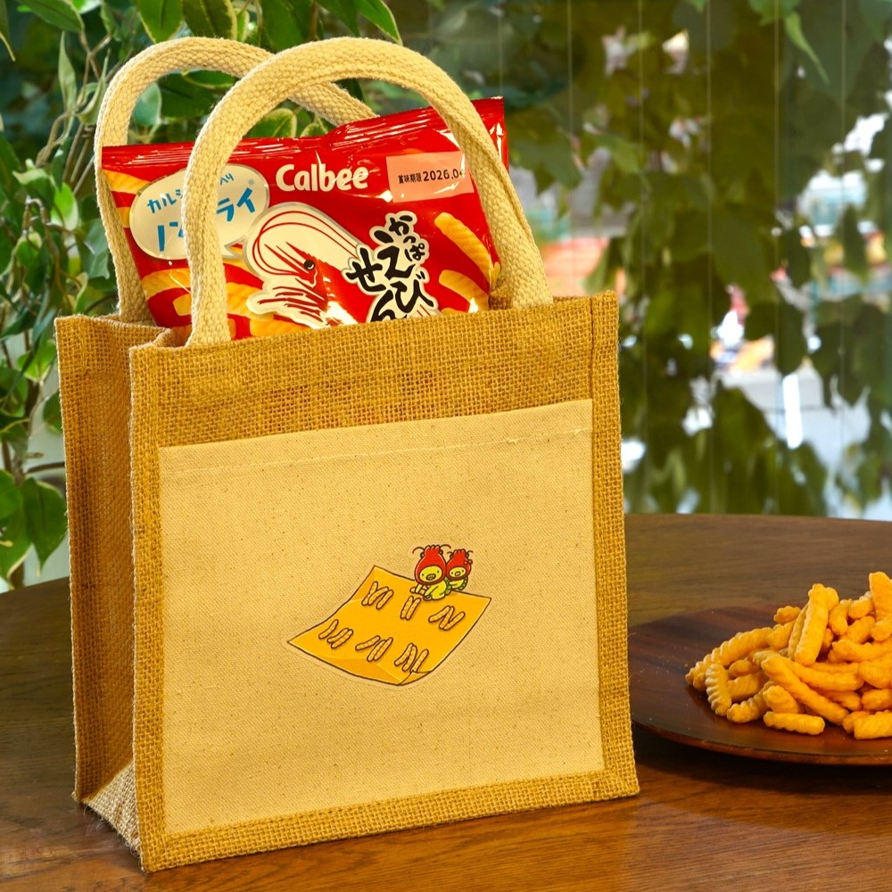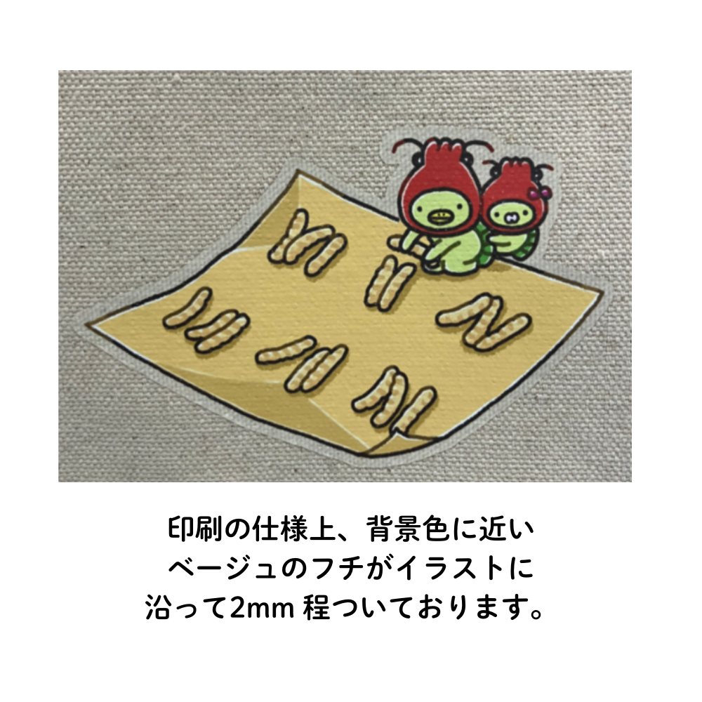 人気クリエイターぼくさんに描き下ろしていただいた、かっぱえびくんと妹のエビーちゃんのイラストがプリントされたランチトート。