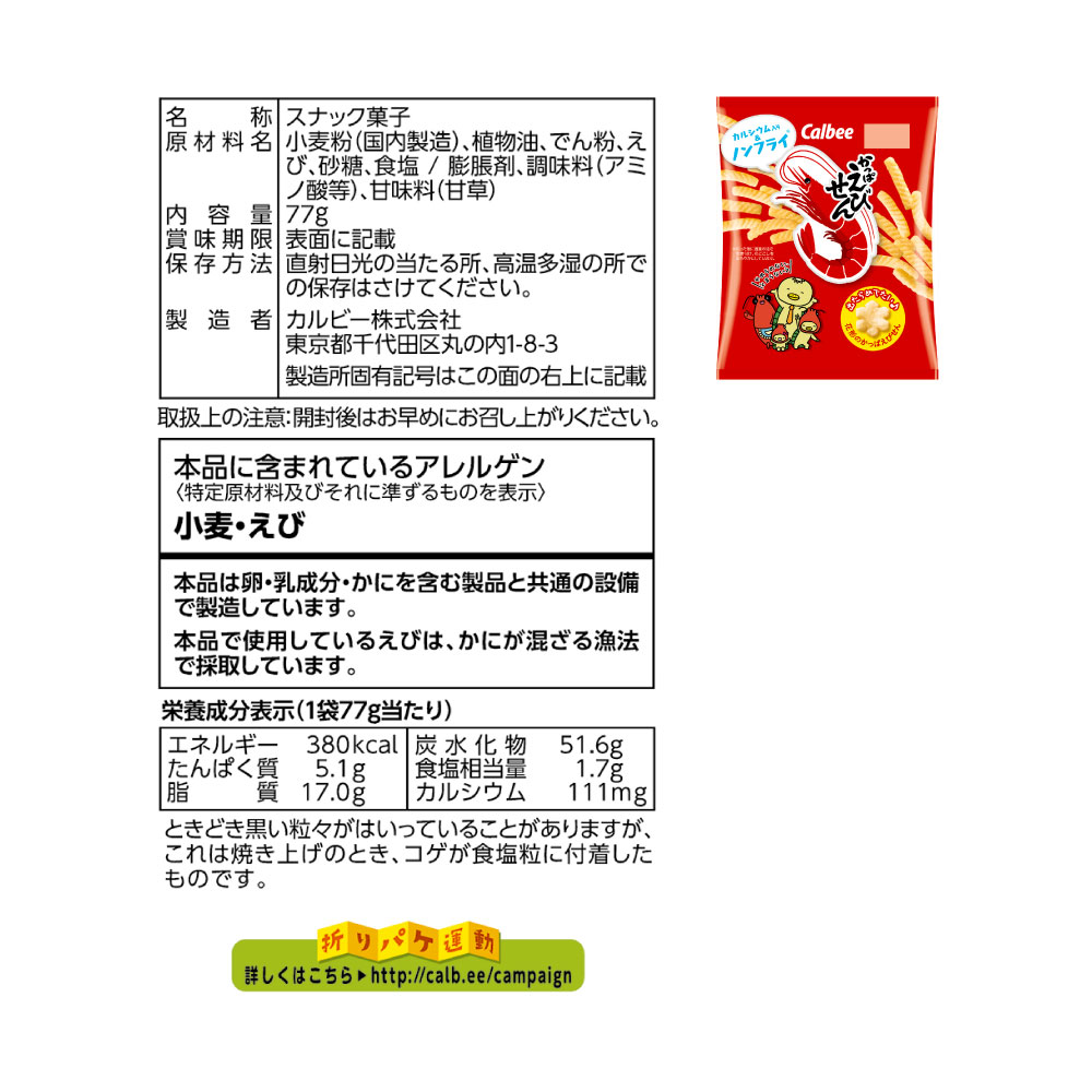 1964年発売のロングセラー商品です。 天然えびをまるごと殻ごと使用!だからおいしくてカルシウム入り!油で揚げずに煎る「ノンフライ(*)」で、香ばしくサクサクとした食感が楽しめます。やめられない、とまらない♪