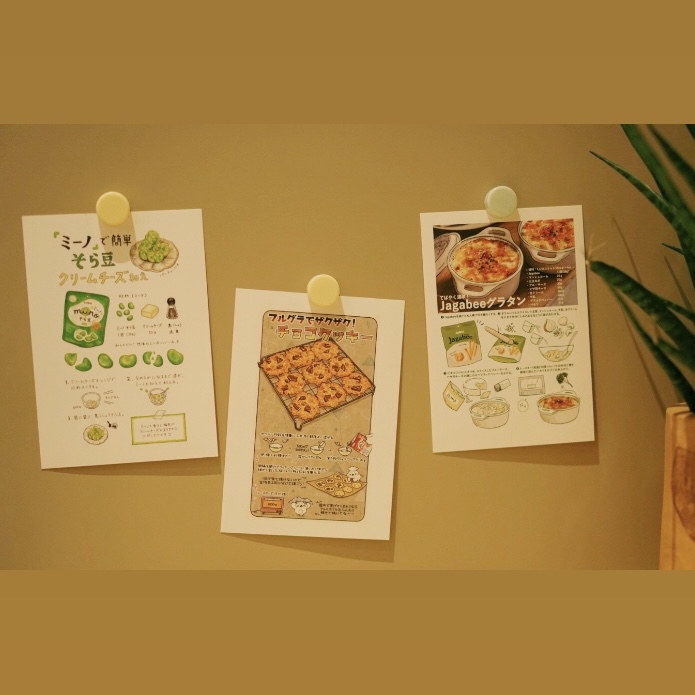 人気クリエイターぼくさんに描き下ろしていただいた、かっぱえびくんと妹のエビーちゃんのイラストがプリントされたランチトートと、 カルビー商品を使ったアレンジレシピのイラストが描かれたカレンダーのセット。