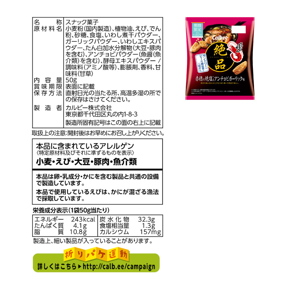 絶品かっぱえびせん 赤穂の焼塩とアンチョビガーリック味(50g)