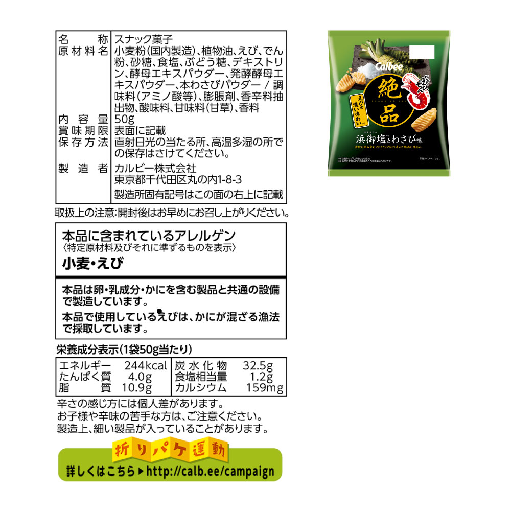 絶品かっぱえびせん 浜御塩とわさび味(50g)