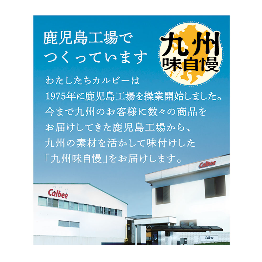 わたしたちカルビーは1975年に鹿児島工場の操業開始しました。今まで九州のお客様に数々の商品をお届けしてきた鹿児島工場から、九州の素材を活かして味付けした「九州味自慢」をお届けします。