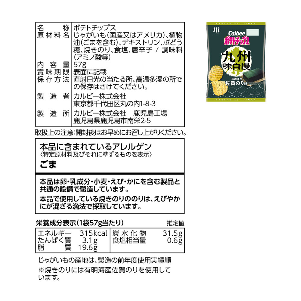 九州の素材を活かして味付けし、九州の工場で生産した、こだわりのポテトチップス