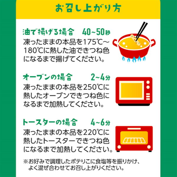 「じゃがりこ」から生まれたホットスナック『ポテりこ』が、ついに冷凍商品になってカルビーマルシェに登場!! カルビーのアンテナショップ「カルビープラス」で大人気の『ポテりこ』が、おうちで楽しめるようになりました。 外はサクッと、中はホクホク。具材が練りこまれた新しいタイプのポテトフライで、食べた瞬間、思わず笑顔になるおいしさです。 冷凍だから簡単調理でいつでも楽しめる!おやつにも、おつまみにもぴったりな『ポテりこ』は、家族や友達との時間をもっと楽しくしてくれること間違いなし。 カルビーが贈る“ホットなスナック体験”、ぜひお楽しみください!