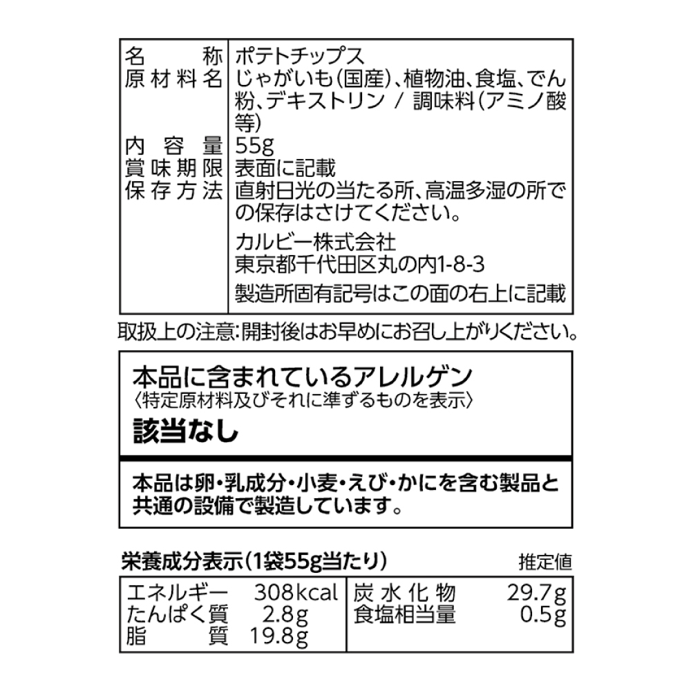 カルビーのポテトチップスは、使用するじゃがいもの品種やその日の品質状況を見ながら、こまめに油の温度・ポテトチップスの厚みやフライ時間も調整して、食べ進む「パリッ」と軽い食感に仕上げています。 いつもこだわっている食感の“揚げたてのおいしさ”は、召し上がった方だけが知る感動の味わいです。