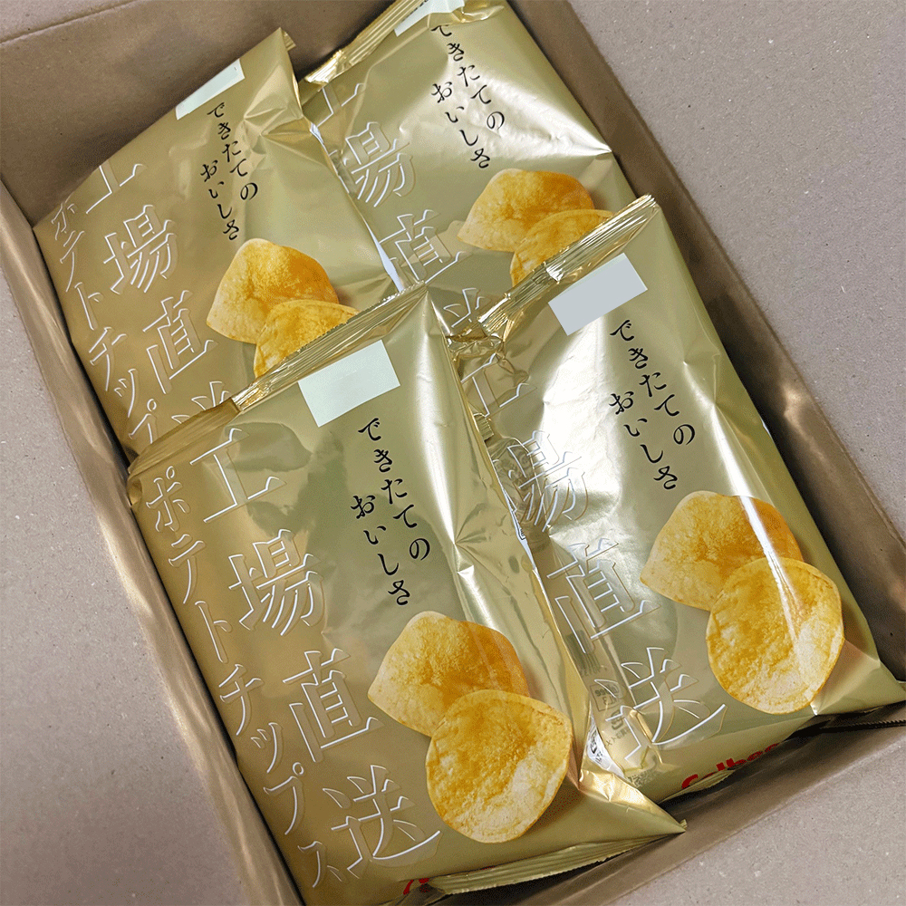 「工場直送ポテトチップス」は、製造後7日以内に発送。工場のできたてのおいしさをお届けします。