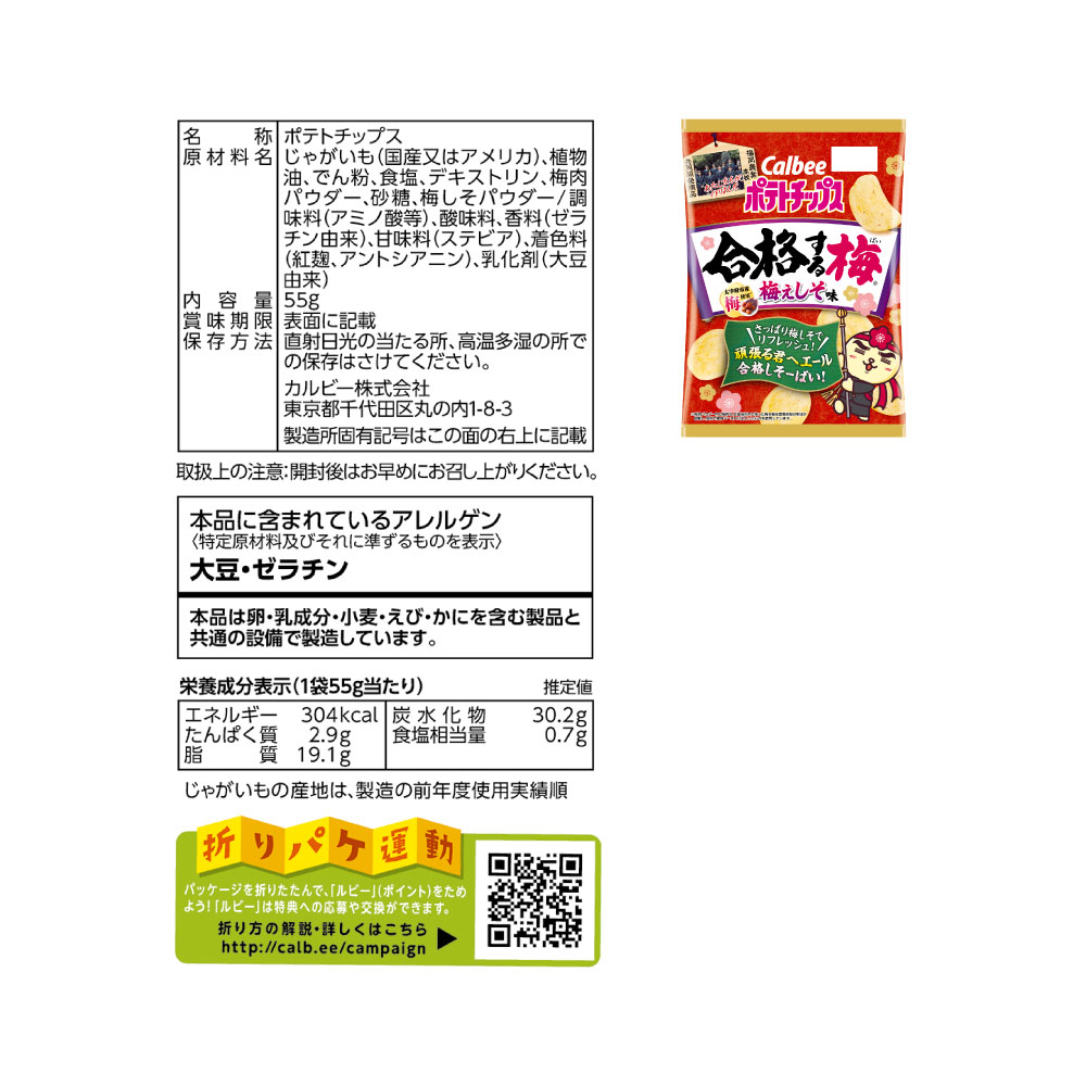 【お届け内容】 ポテトチップス合格する梅 梅ぇしそ味(55g)12個 ※1回のご注文で3セットまでとさせていただきます。 ※賞味期限60日以上ある商品を発送いたします。 ※在庫が無くなり次第、販売を終了いたします。 写真はイメージです。