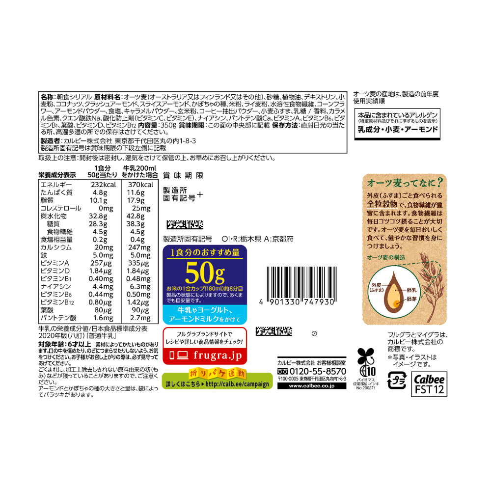 焦がしキャラメル風味に焼き上げたグラノーラ生地に、2種類のアーモンドとかぼちゃの種をトッピング。大人のビタースイートな味わいで、噛みしめるほどに深い味わいがお楽しみいただけます。